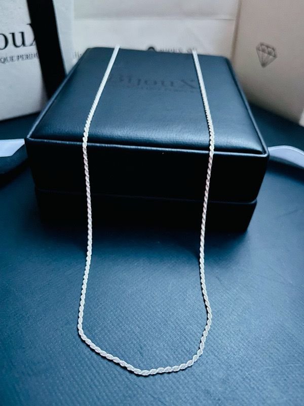 “Cadena italiana en plata ley 925 con tejido lazo delgado, un diseño fino y elegante que destaca por su delicadeza y brillo sutil, ideal para un look sofisticado.”