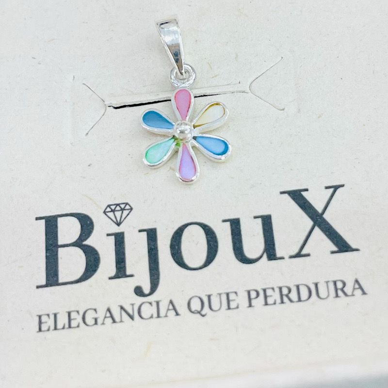 Hermoso y elegante dije en plata italiana ley 925 con forma de flor elegante para cadena en plata.