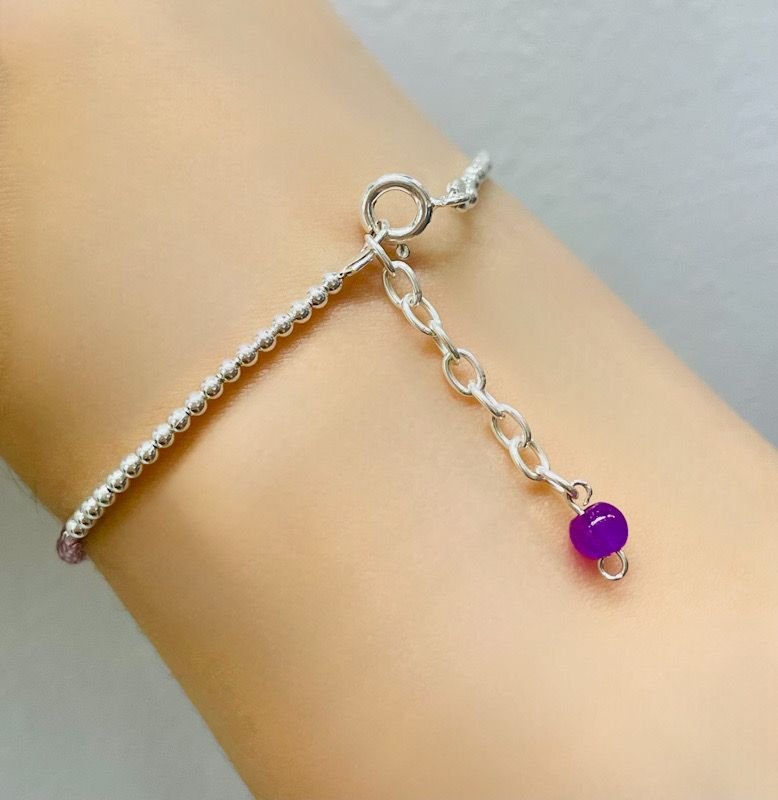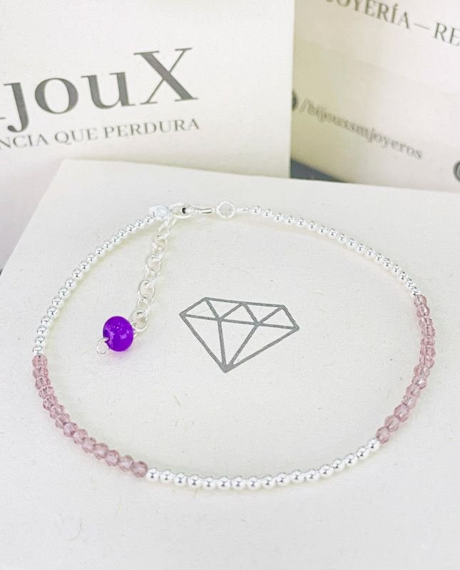 Refinada y sutil, esta pulsera combina la elegancia de la plata con el encanto del cristal murano en tono lila. Un diseño femenino y versátil que añade un toque de color suave y distinción a cualquier conjunto.