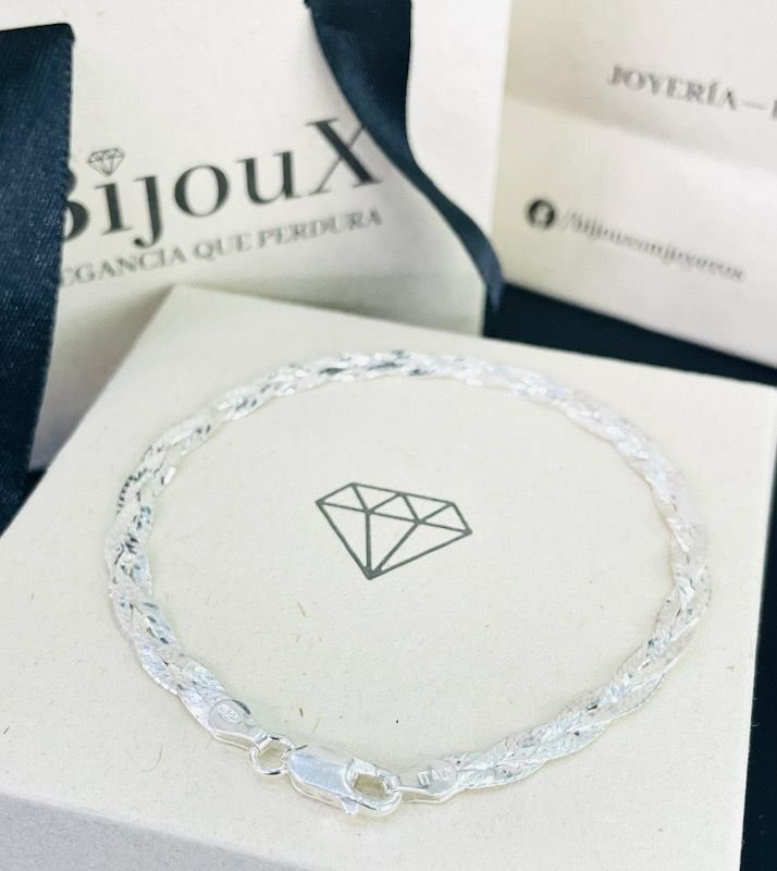 Diseñada en plata de ley 925 con un fino tejido en trenza plana, esta pulsera destaca por su brillo pulido y su estilo atemporal. Elegante y versátil, es el complemento perfecto para cualquier ocasión.